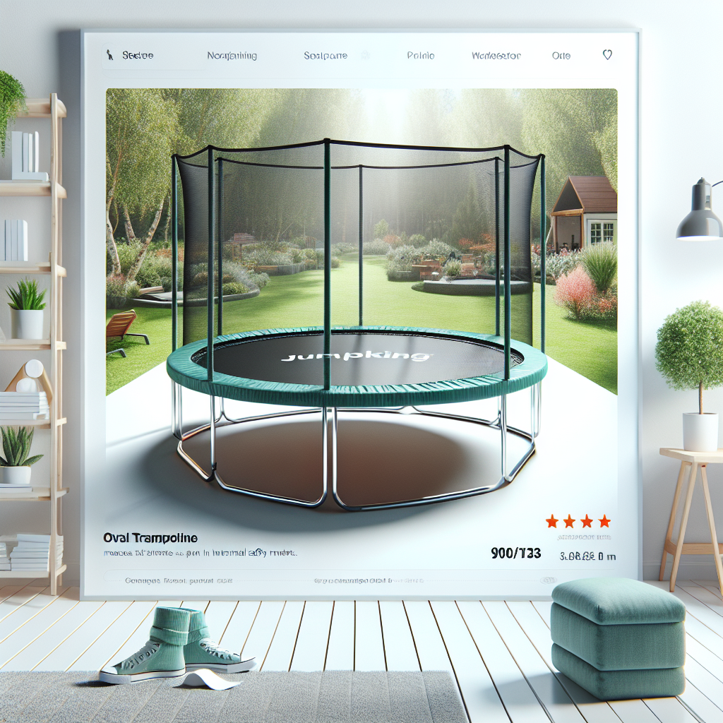 טרמפולינה אובלית לחצר 901723 בגודל 3.0/4.6 מטר עם רשת פנימית JUMPKING היא טרמפולינה איכותית המתאימה לפעילות גופנית, למשחק מהנה ולשיפור הקואורדינציה.